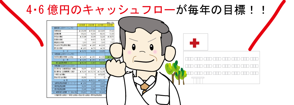 2011年度の年報では、「キャッシュフロー計算書」も掲載し、他病院から「経理システムが進んでいますね」との評価もいただいているよ。